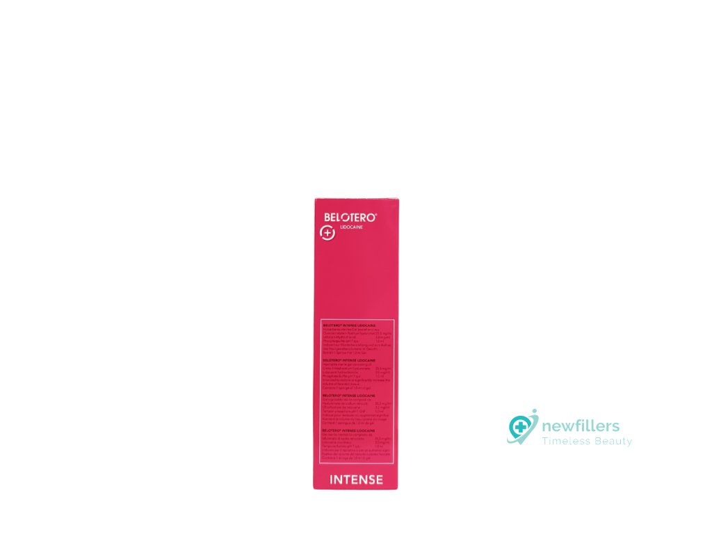 BELOTERO® Intense lidokainem, zasíťovaná kyselina hyaluronová s přídavkem lidokainu. Výplň je primárně určena ke zlepšení objemu a kontury rtů, rejuvenace kůže, redukce vzniku obličejových vrásek.