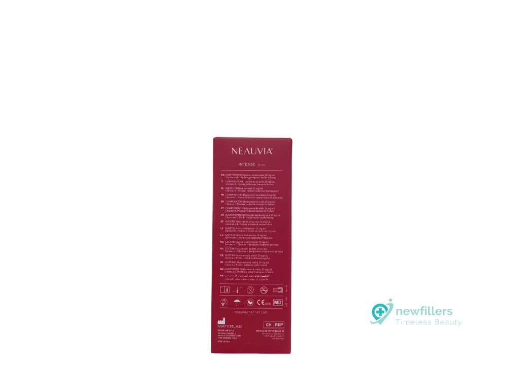 Neauvia™ Intense – výplň která obsahuje nejen kyselinu hyaluronovou, ale i aminokyselinu glycin a L-prolin, které jsou hlavní složkou kolagenu. Díky tomu má také silný liftingový efekt. Je vhodná k vyplnění hlubokých vrásek a nasolabiálních rýh. Je vysoce adaptivní k tkáni, díky čemuž se hodí k tvarování brady, kontur obličeje.